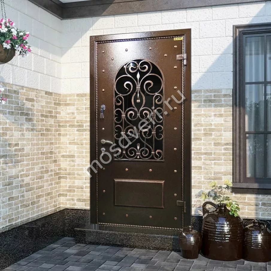 Входные двери со стеклом и ковкой в Фокино